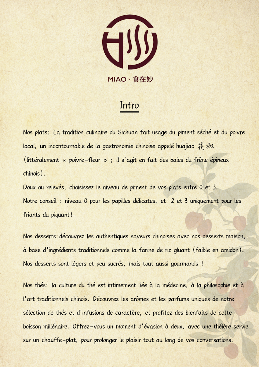 食在妙 MIAO restaurant & salon de thé chinois in Montpellier offers an authentic journey into Chinese regional cuisine paired with a refined tea house experience. The menu highlights homey, flavorful dishes like tender pork wontons, refreshing cucumber salad, and savory dumplings that showcase traditional techniques and quality ingredients. Signature drinks such as fragrant jasmine tea and zesty lemon black tea perfectly complement the meal, while the standout mango mochi dessert leaves a lasting impression.